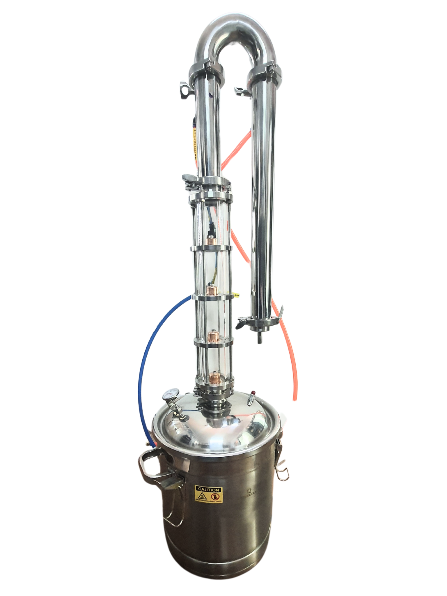 This 22-litre glass column still, complete with boiler, 2-inch four-plate glass column, and water piping connections, is the perfect still for crafting various types of spirits at home.